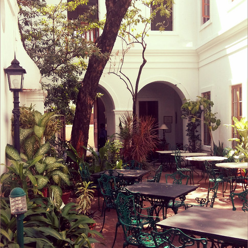 Wondering where to park my appetite, I walked around the blocks twice – coming across tiny establishments and flamboyant ones. The one that sparked my curiosity was The Hotel L’Orient, a grand antique hotel, giving off a smug air of being there too long to be ruffled by the latest candy coloured addresses. The inner courtyard restaurant beckoned, the cheerful staff seat me and read out the specials. I look at the manager and said, just recommend the best. A glass of cool chenin blanc paired with Ginger Lime prawns and a masala relish is brought to my table. The delicate ginger and lime tang paired with spice, is just what I need. Enjoying the view of the garden courtyard, I surrender to my meal. I am snapped out of my trance, when the chef asks what he can get me for dessert. Again, I just said surprise me and that he did. Flambé pineapple, served with home-churned vanilla ice cream, a dish that would not have scored a 10 for presentation, but really made up for it in taste.